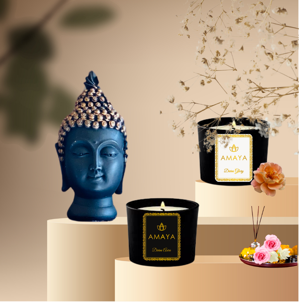 This bundle features two exquisite soy wax candles "Divine Aura" and "Divine Glory".